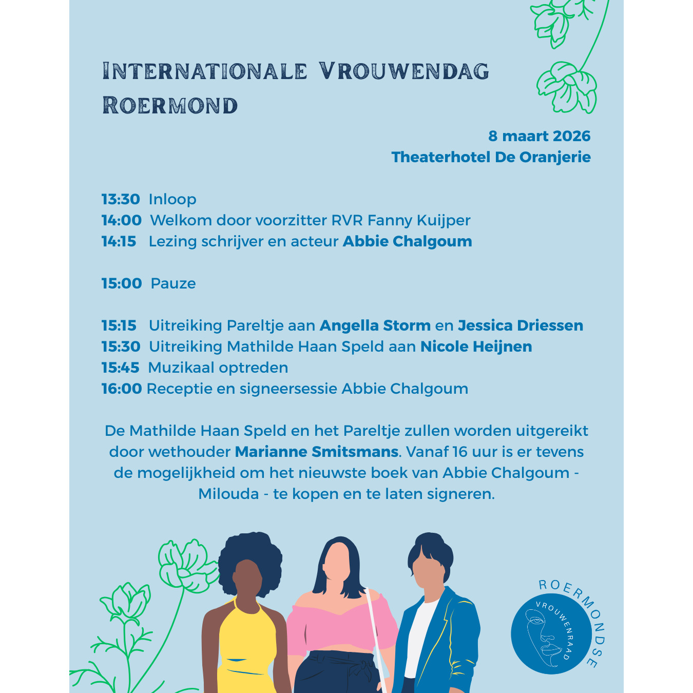 Met speciaal in gedachten alle Roermondse vrouwen, vrouwen in het verzet, Joodse vrouwen, de vrouwen in Jappenkampen, de verpleegsters aan het front, de vrouwen die thuis het werk van mannen....